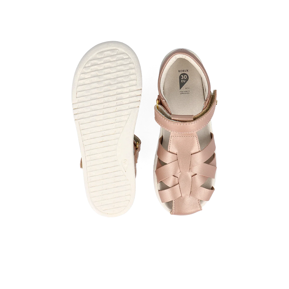 Crafted from fast-drying leather, kids can cool off in warm weather without water exposure affecting the condition of their TROPICANA sandals. With an elegant strappy design, the quick-dry effect is able to work its magic and with a lined heel and closed toe, delicate feet are kept comfortable and secure. Suitable for active kids, this Bobux style fits true to size.