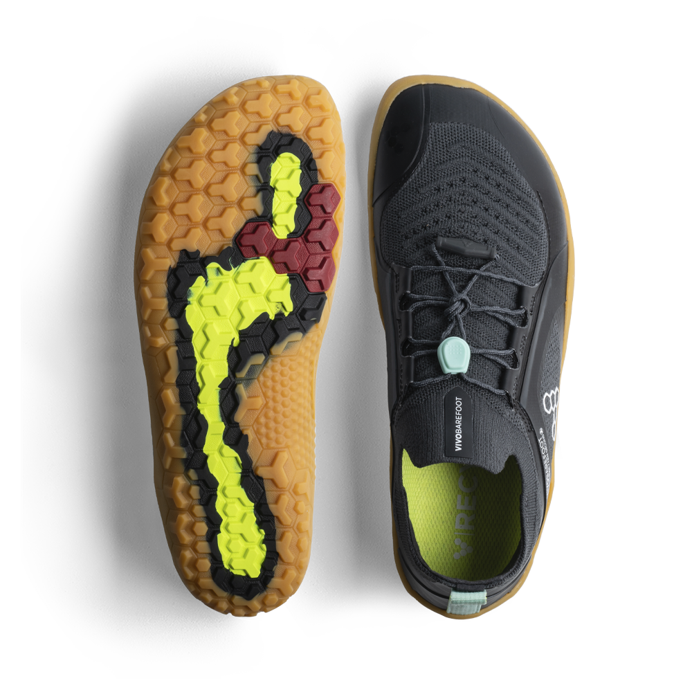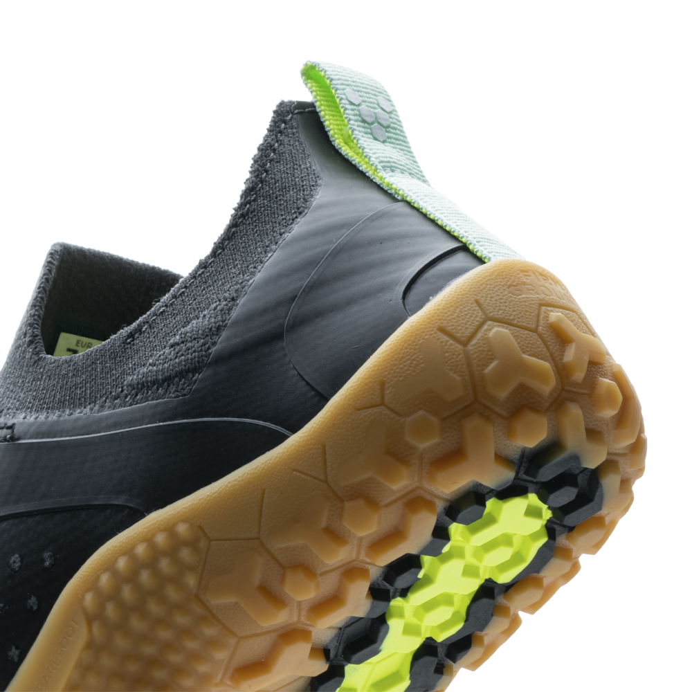A knit upper and sock bring flexibility and protection. A quick-lace system means easy adjustments. And a thin Firm Ground sole balances barefoot sensation with grip, feeling fast on varied hardpack terrain, building natural strength with every step.